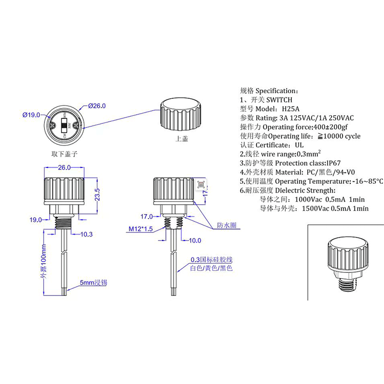 3.防护等级Protectionclass:IP67